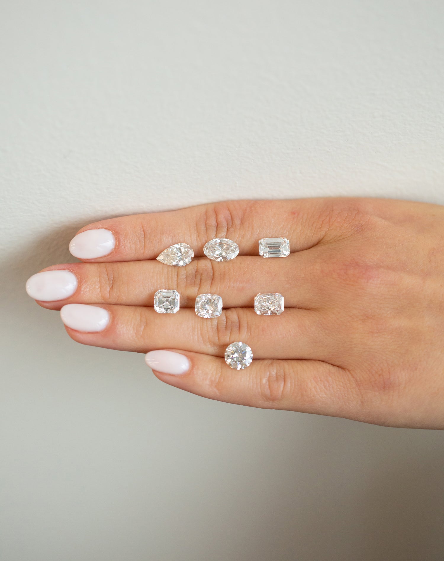 Then, we meet with you in person or virtually to educate you on diamonds, including the 4 Cs: Clarity, Color, Cut, Carat. The goal is to inform you enough about diamonds to make an educated decision on the types you'd like to compare. We will then source diamonds to show you in person or virtually. We will continue to discuss the 4Cs and other aspects as we compare them. This will help you narrow further and ultimately choose the perfect center diamond(s) for your ring.