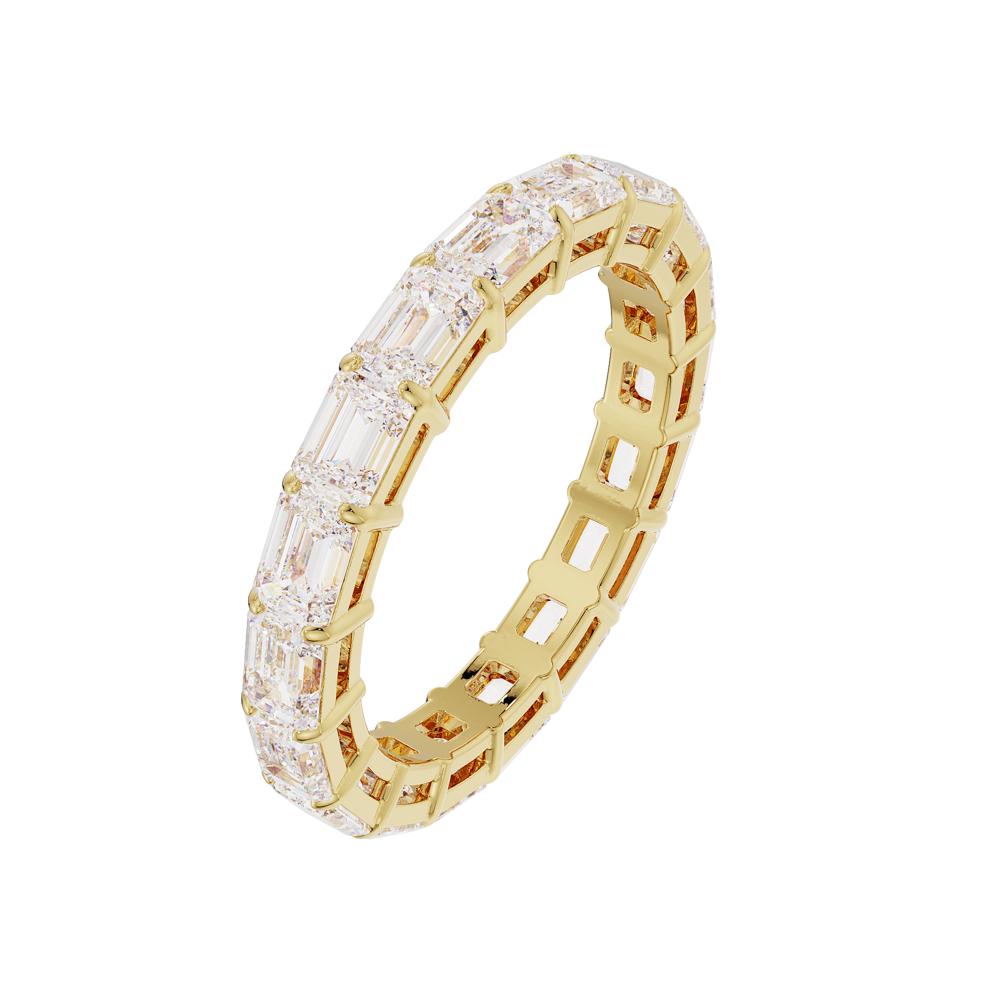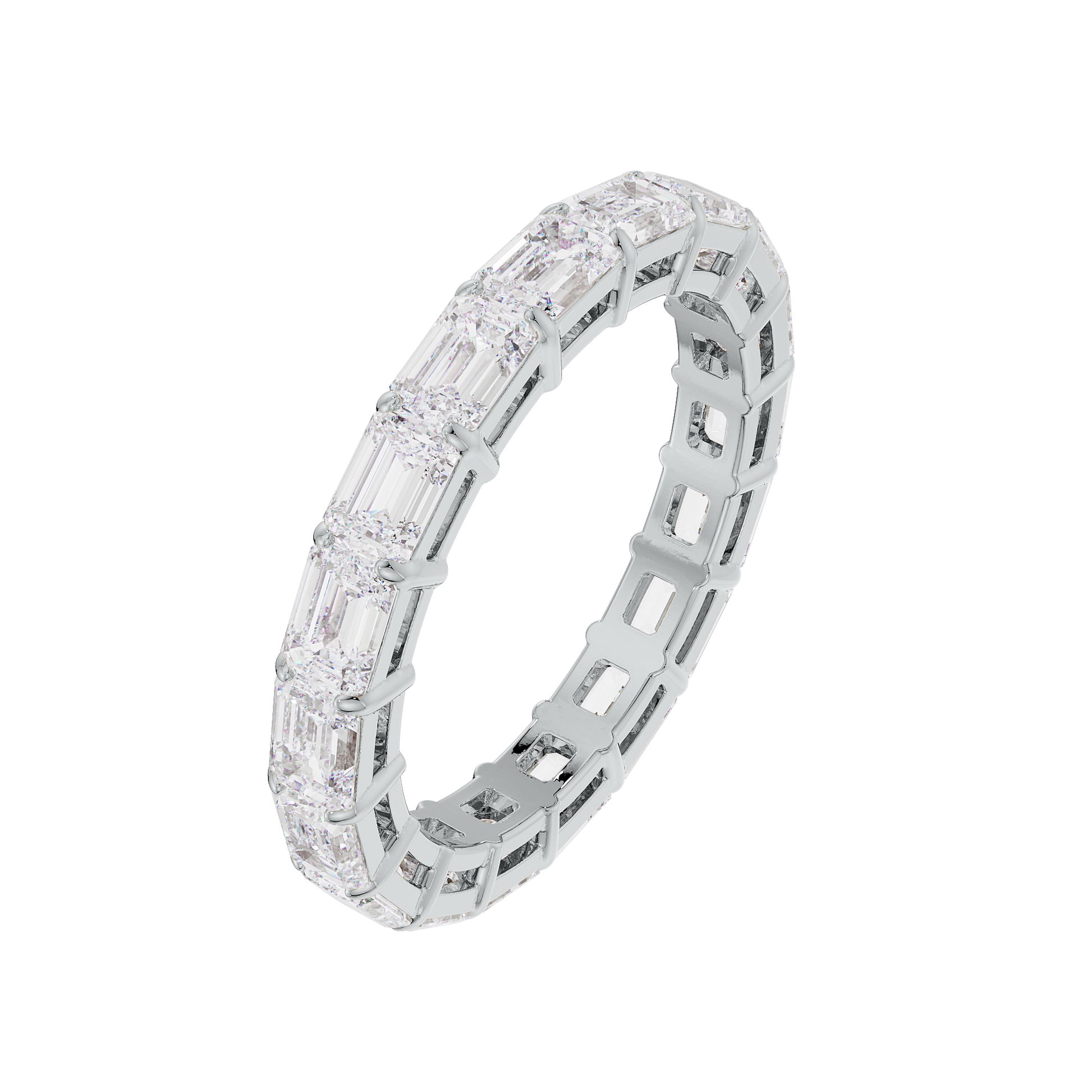 This sideways emerald cut band uses 2.5mm x 3.4mm (.15 carat each) diamonds. See additional details below.