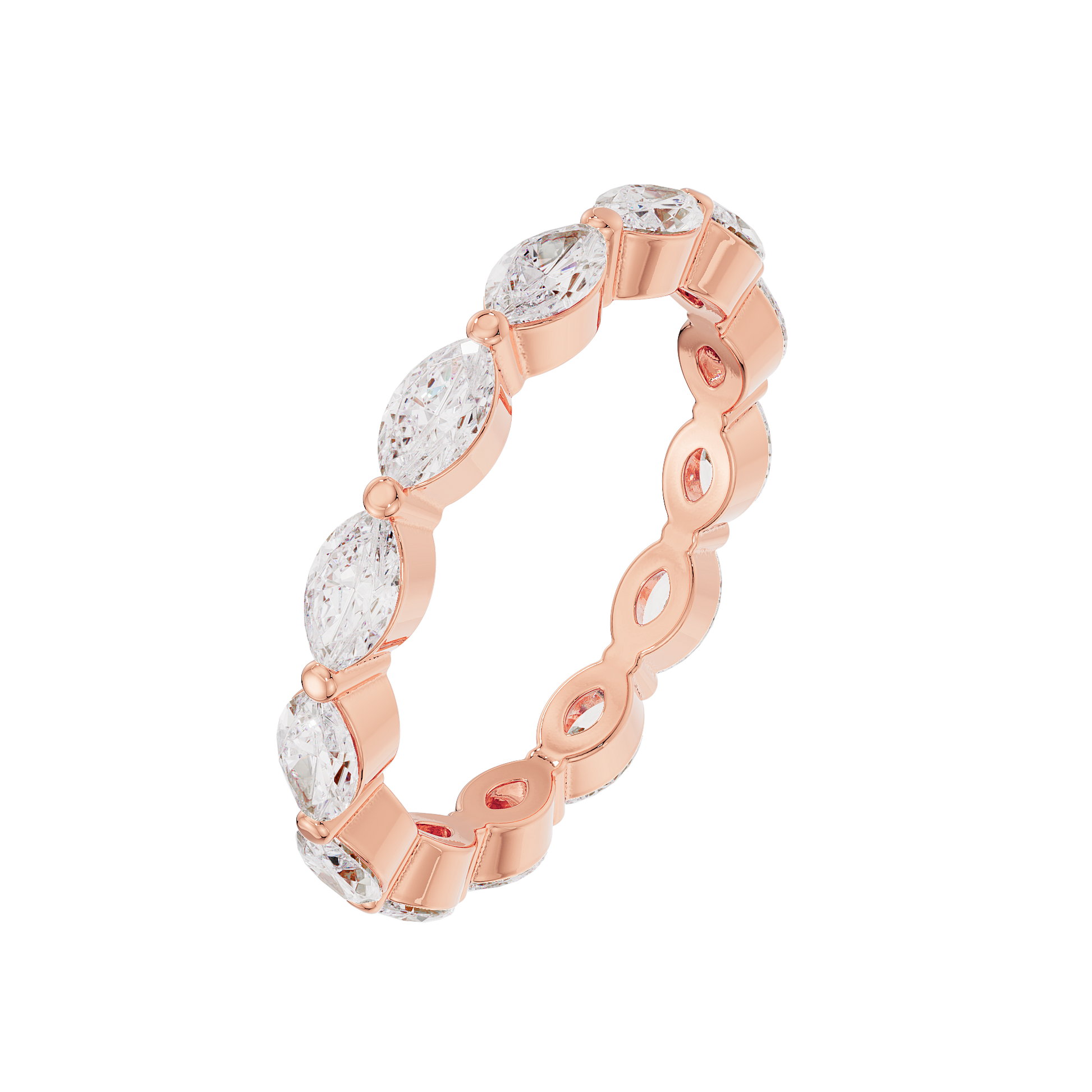 This 2.5mm single prong marquise band gives a more feminine look and uses 4.5mm x 2.5mm (.11 carat each) diamonds. See additional details below.