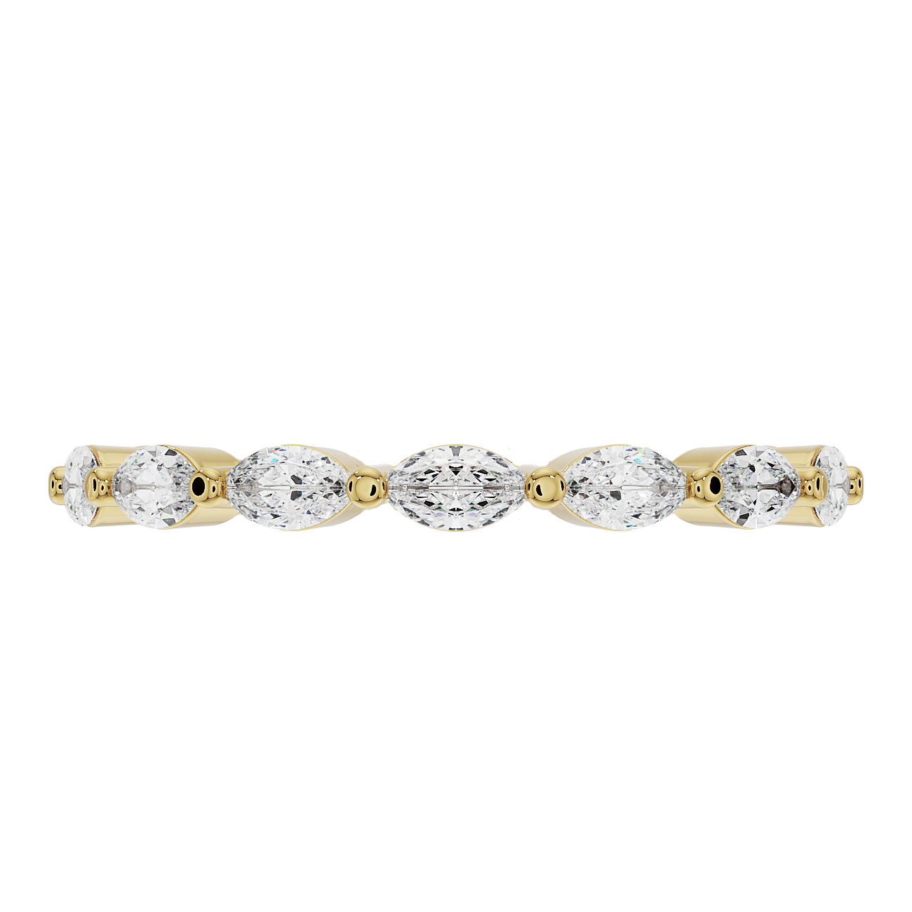 This 2mm single prong marquise band gives a more feminine look and uses 2mm x 3.6mm (.06 carat each) diamonds. See additional details below.