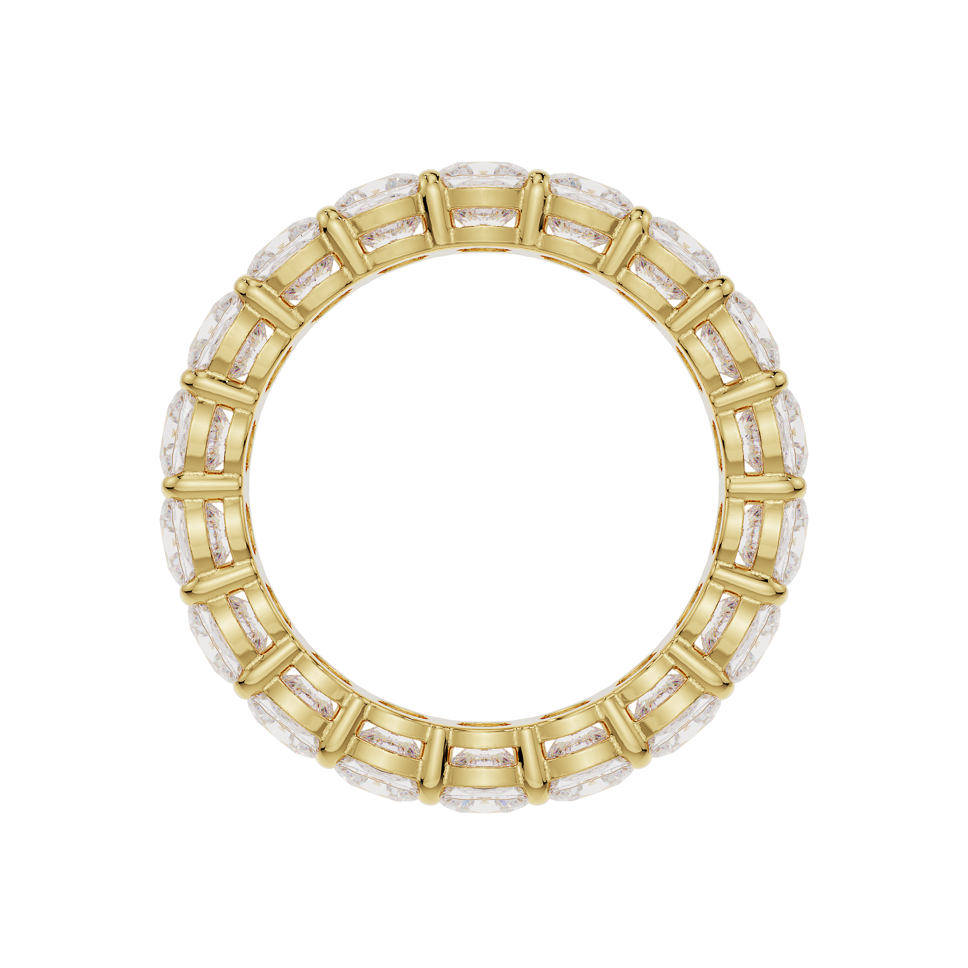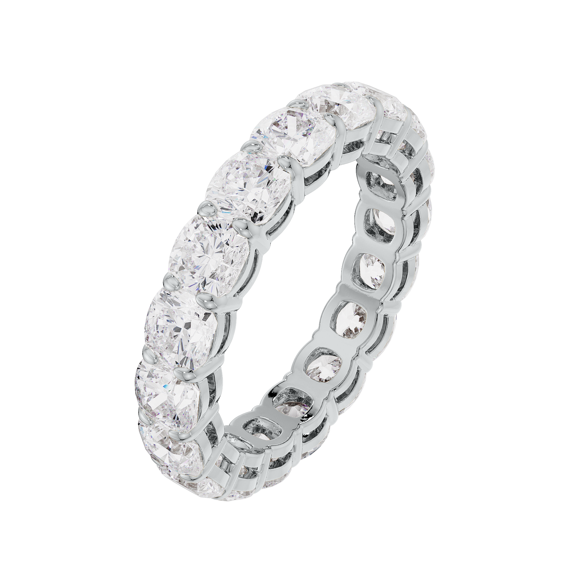 This cushion diamond eternity band uses 3.5mm (.165 carat each) diamonds. See additional details below.