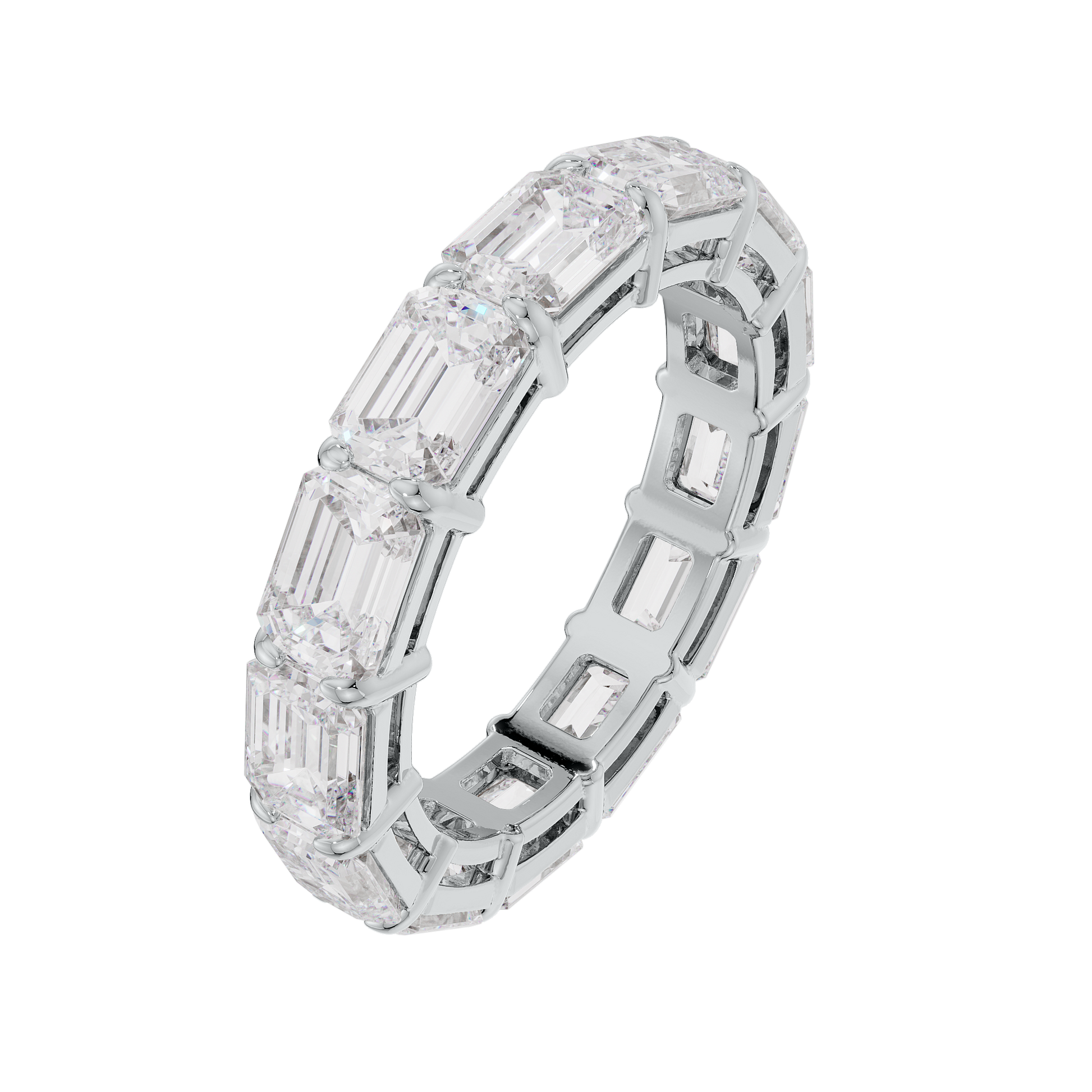 This sideways emerald cut band uses 3.5mm x 4.8mm (.40 carat each) diamonds. See additional details below.