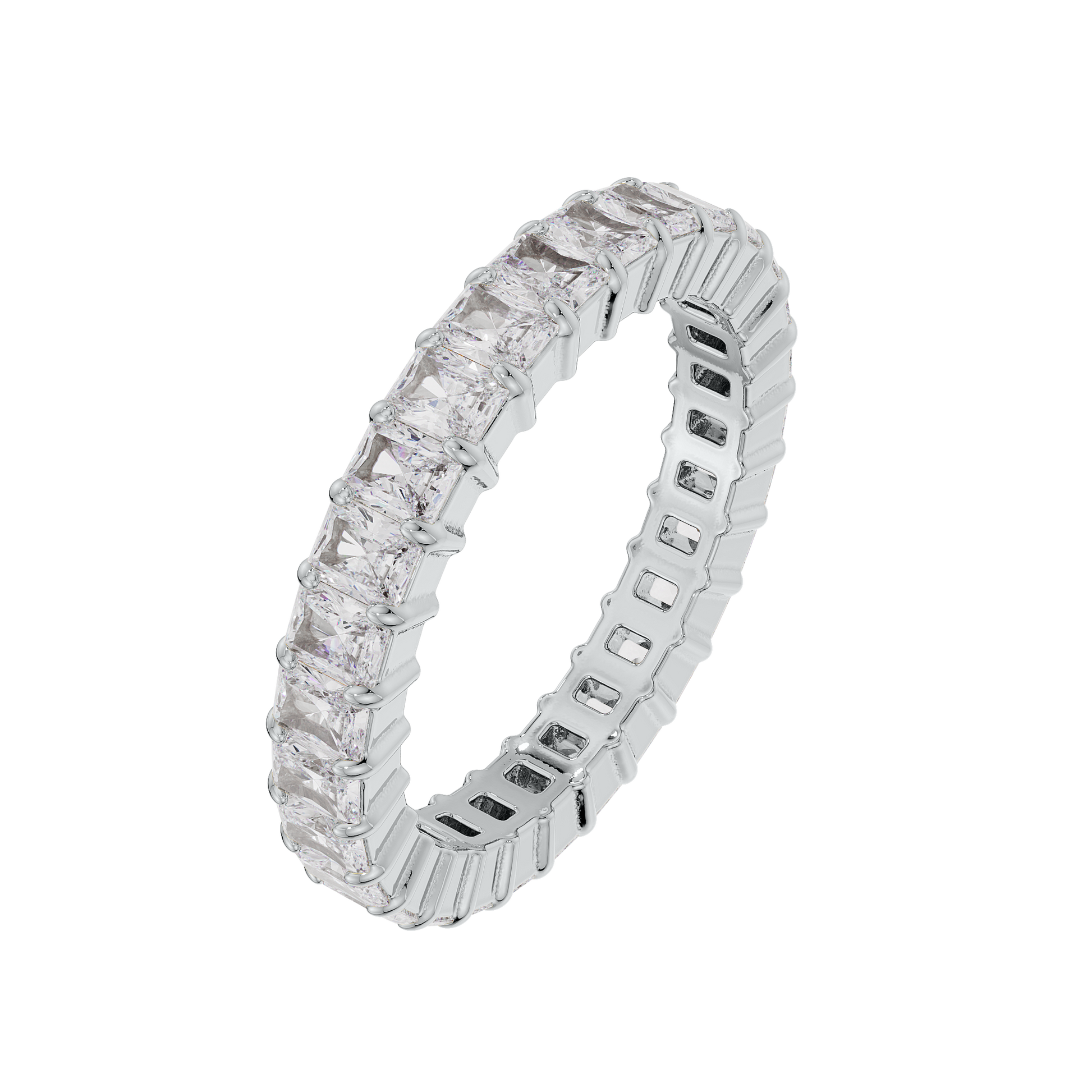 Using the smallest possible radiant diamonds at 2mm x 2.8mm (.08 carat each), this is the smallest classic radiant diamond band. See additional details below.