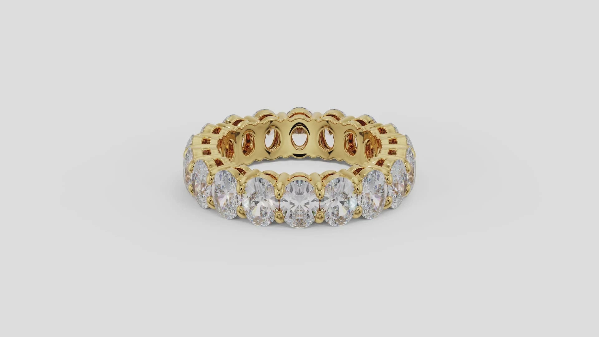 This classic oval diamond band uses approximately 4.7mm x 3.4mm (.25 carat each) diamonds.