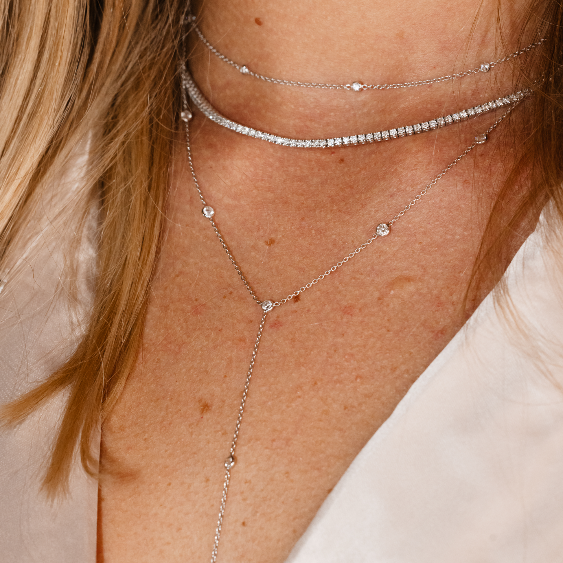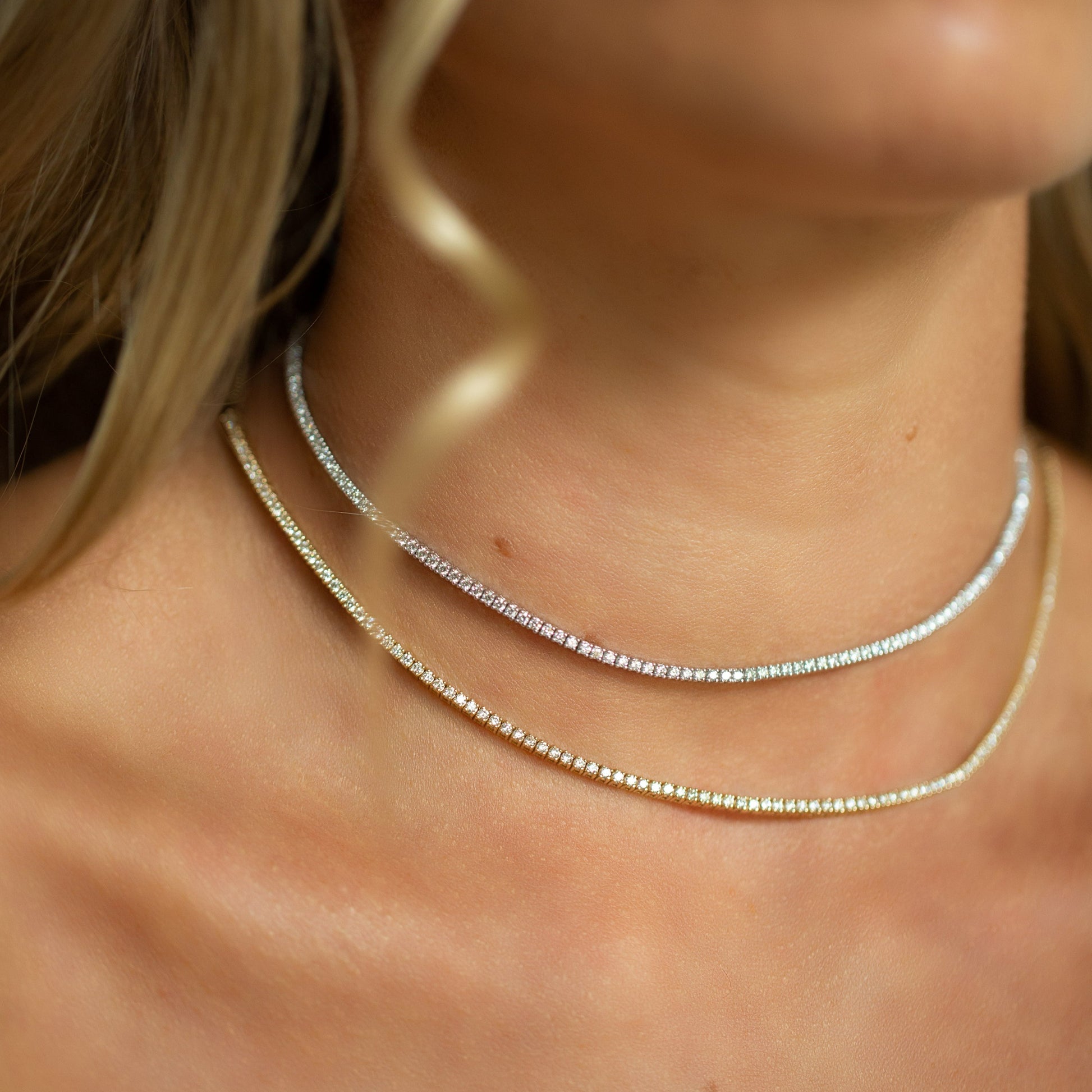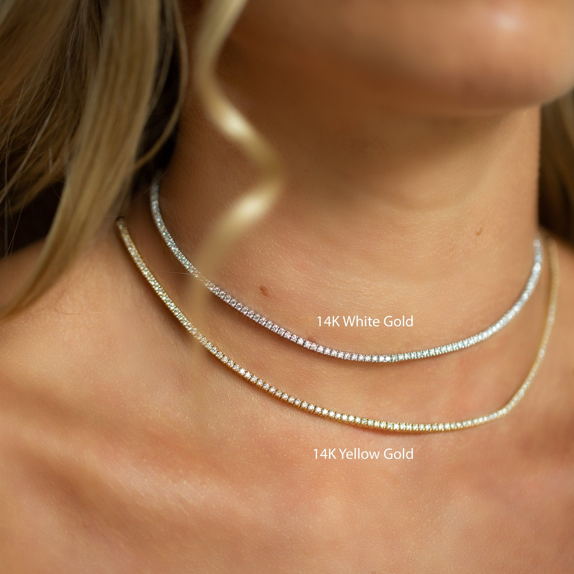 Diamond tennis necklaces are a classic piece that can be layered with other necklaces or worn alone, and worn daily or dressed up. Adding this wide range of adjustability makes this piece that much more versatile.