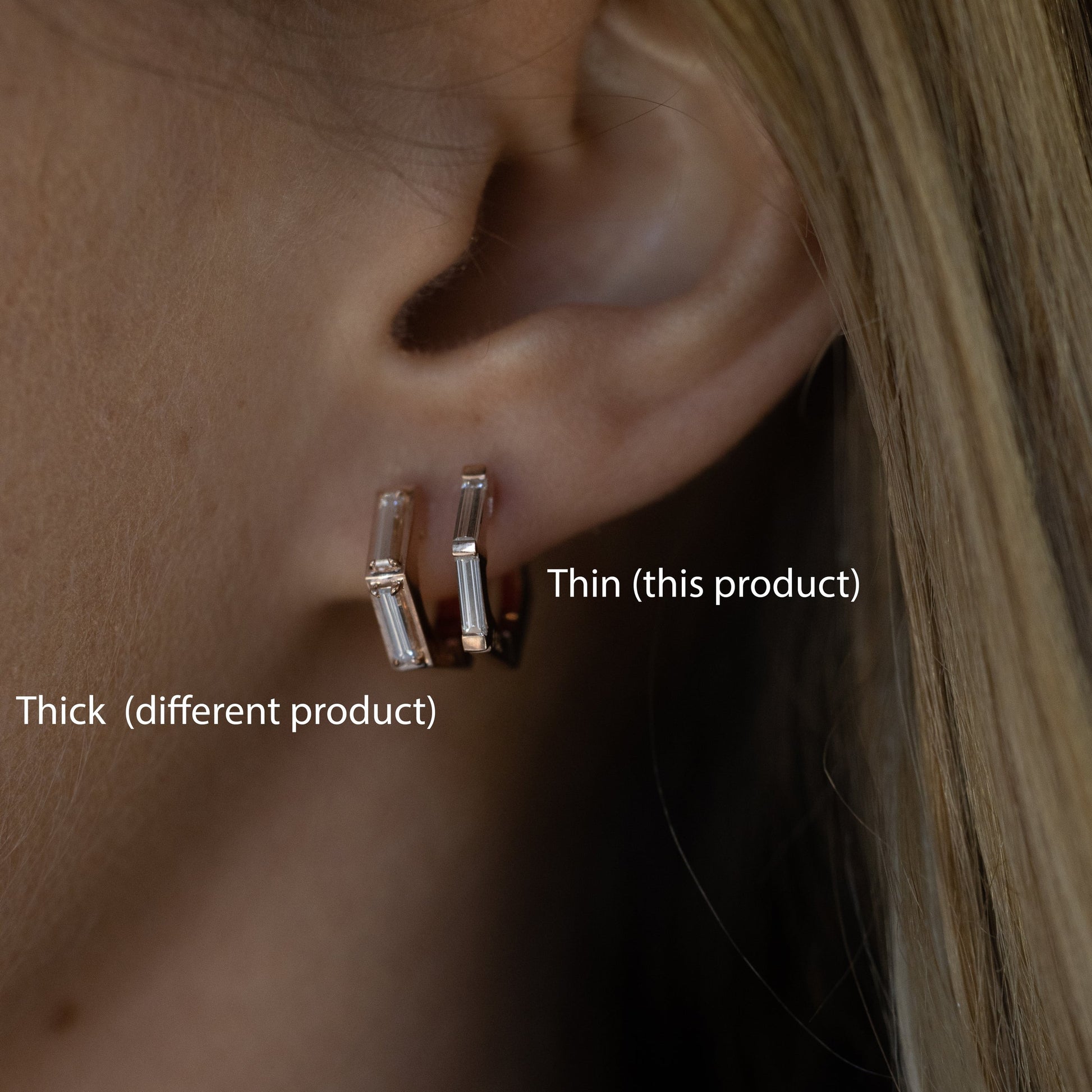 Diamond huggies are the best everyday earring! We offer our Caurbon huggie in two variations: thin & thick. This is the thin style. It is perfect if you are looking for a more dainty look.