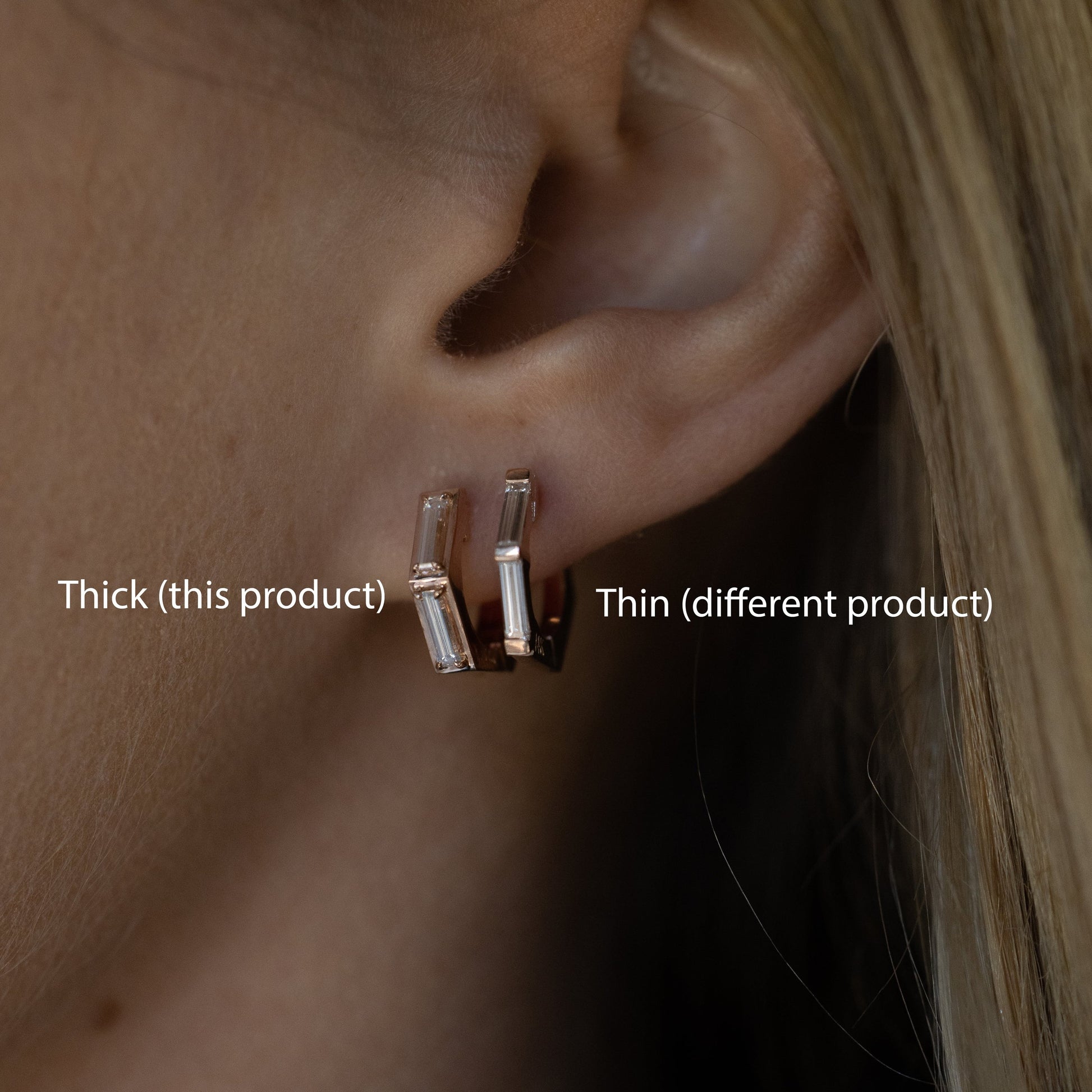 Diamond huggies are the best everyday earring! We offer our Caurbon huggie in two variations: thin & thick. This is the thick style. It is perfect if you are looking for something a bit more bold.