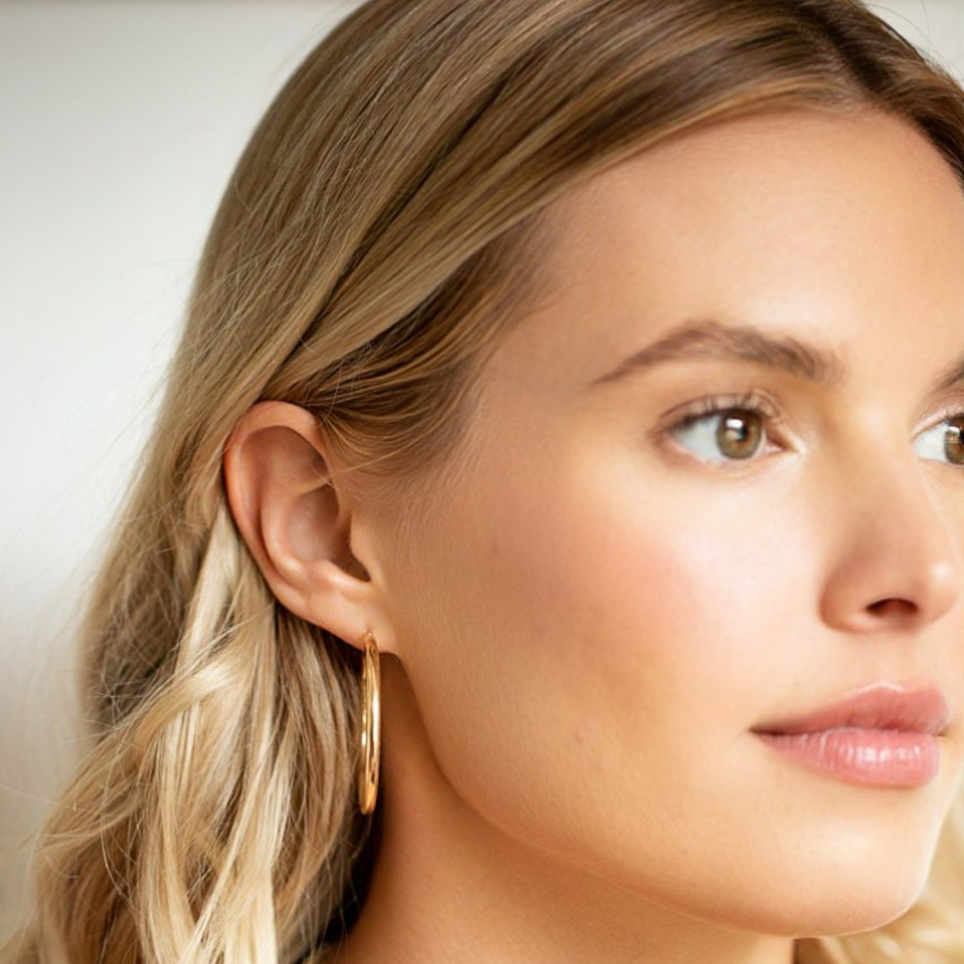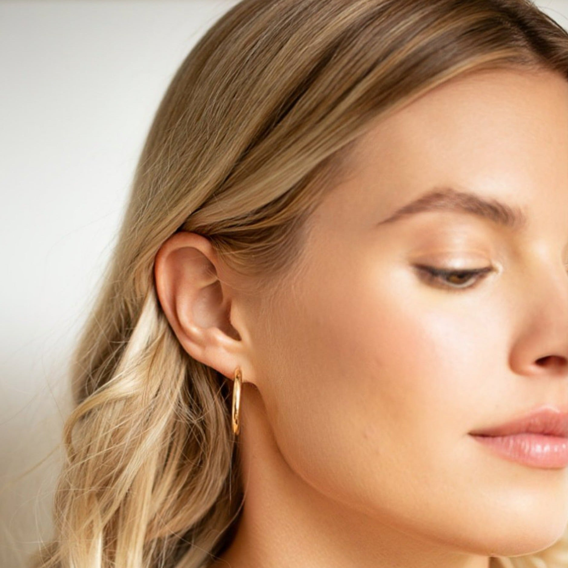Hoop earrings are a jewelry box staple. These are made from pure 14K gold, but they are hollow on the inside so that they don't weigh down your ear.